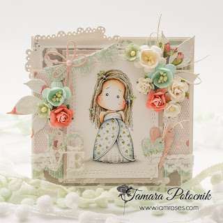 Today I'm sharing with you a Birthday card made with lots of gorgeous I am roses pastel flowers. Image used is called Wonderful Tilda and it's from Magnolia. I added lots of different layers made from pretty design papers.