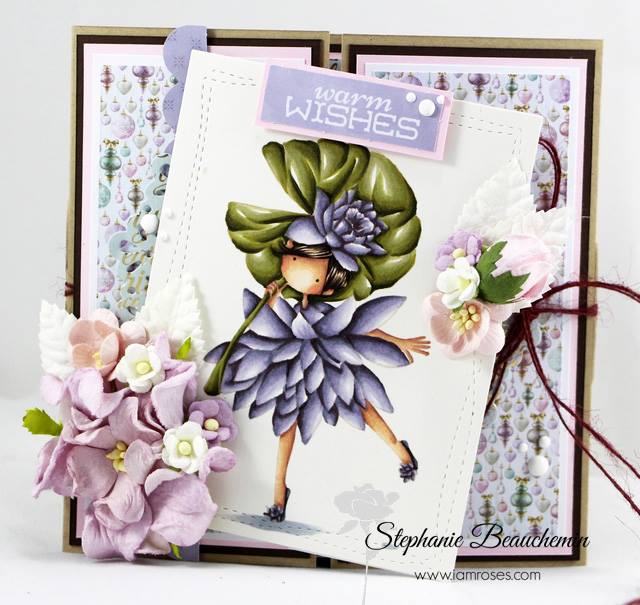 After doing this step, I took out the big guns and created a 4¼"x5½" cardbase from dark brown cardstock, onto which I layered a few scraps from a recent project made with the gorgeous Winter Land - 6x6 Paper Pack in store. After colouring the image with my Copic markers, I die-cut it with the Fancy Rectangles & Layers Die Set (that is ALSO on sale!), added it to the card with foam tabs, a few flowers and enamel dots.